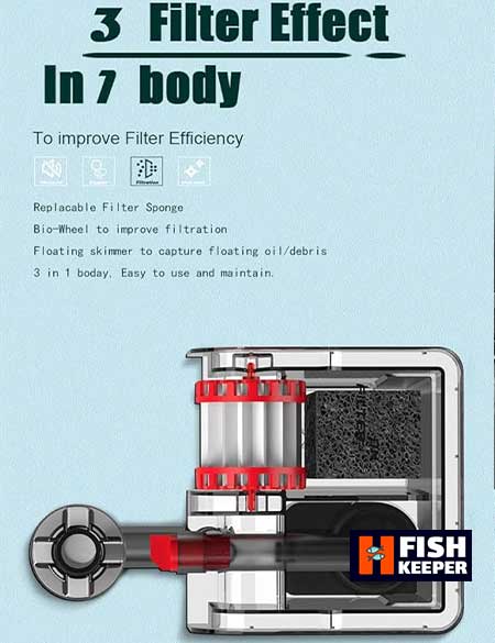 که مناسب برای آکواریوم تا حجم 20-30 لیتر میباشد و در طول یک ساعت 8-12 بار کل آب آکواریوم را تسویه میکند